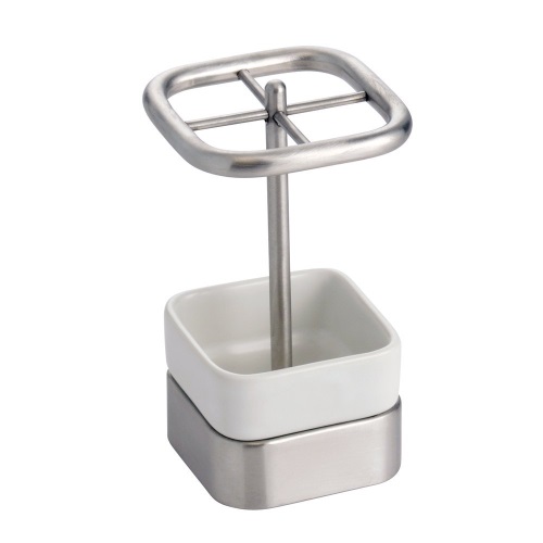 The Gia line features glossy ceramic and stainless steel accents to brighten your home with contemporary styling. Toothbrush holders have four large slots to hold oversized brushes. Keeps brushes upright and clean. Pair with other members of the Gia line.