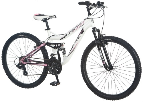 Aluminum full suspension frame maximizes comfort and performance Suspension fork smoothes bumps and increases control SRAM twist shifters change gears easily 21 speeds with Shimano rear derailleur for all types of riding Linear pull brakes provide great braking power